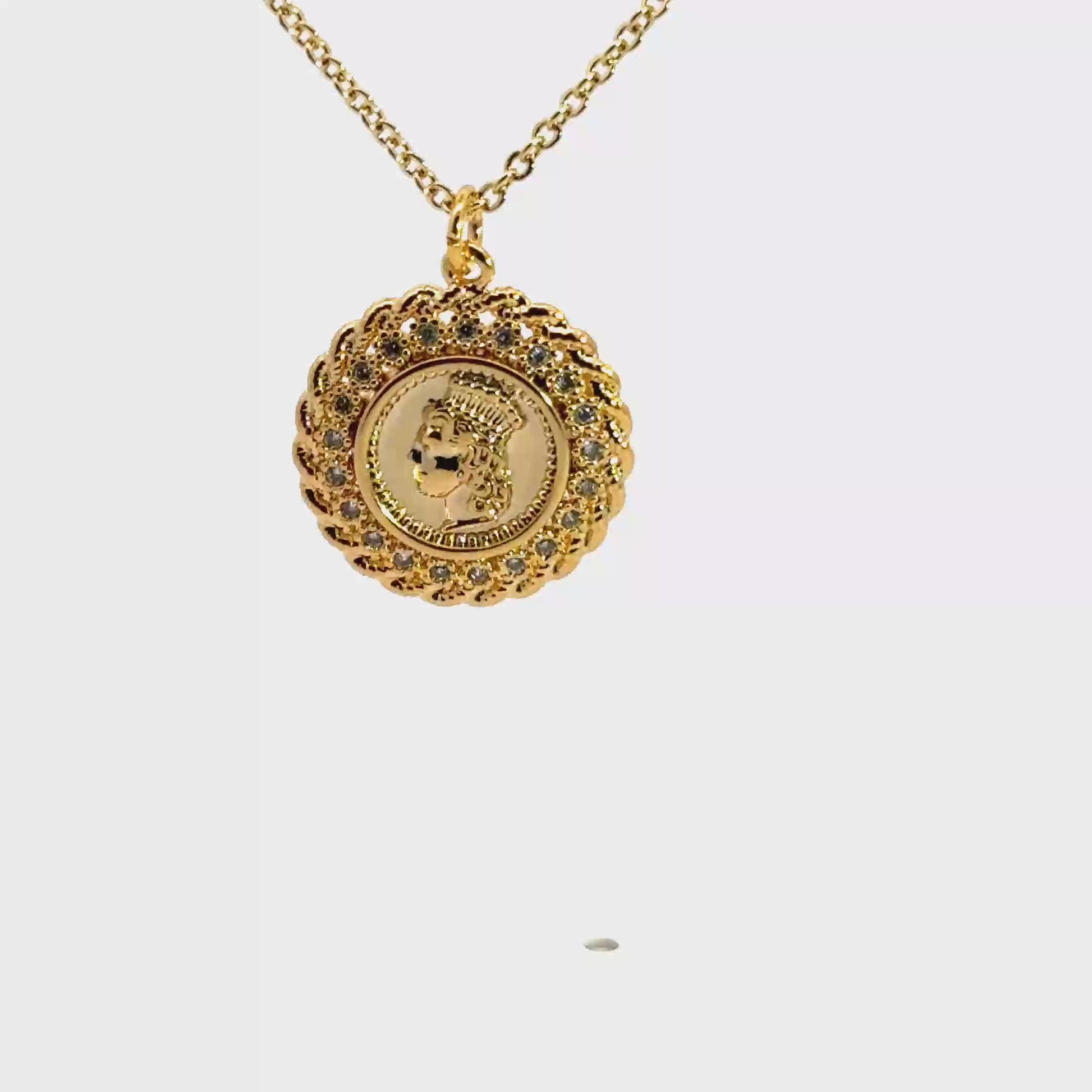This Elegant Yellow Gold Medallion Pendant features a radiant coin design, exemplifying refined craftsmanship and intricate detail. Its timeless elegance brings a sophisticated charm, making it an ideal accessory to enrich any outfit with a subtle touch of luxury. A perfect choice for those who appreciate classic artistry and lasting style.